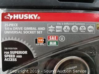 Lot #0338: Husky 1/4" Drive Gimbal & Universal Socket Set