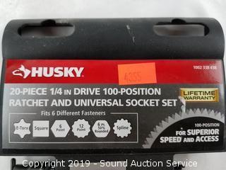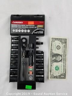 Lot #0332: Husky 1/4" Drive Ratchet & Universal Socket Set
