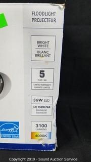 Comes in original box, has been previously installed, has the hardware, works. Bright white, 3100 lumens, 4000k color, 36 watts.
