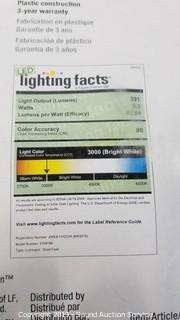 2.66" diameter. 3000k color, 391 lumens. In original packaging, tested, work.