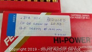 60 are reduced load 110 grain soft point, 20 are 140 grain mil tracers, 20 are 168 grain boat tail hollow point.
