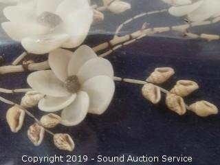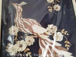 Crafted all out of shells and coral. Wooden framed with plastic protection. Approx. 14" x 26". One looks to be missing a couple shells in the tail of the bird and is starting to detach from the frame.