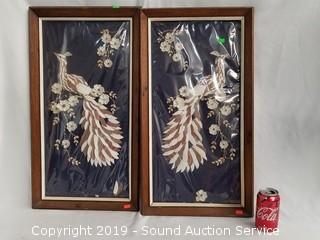 Lot #0331: 2 Antique Unique Shell Peacock Artwork