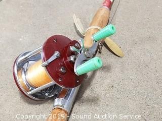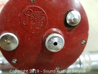 Includes: 8ft 7" 2pc. Fiberglas Rod with Mitchell Garcia 306 Reel, True Temper Montague 5ft Rod with Penn Pier #109 Reel, and a 6ft 8" 2pc. Fiberglas Rod with Penn Pier #109 Reel.