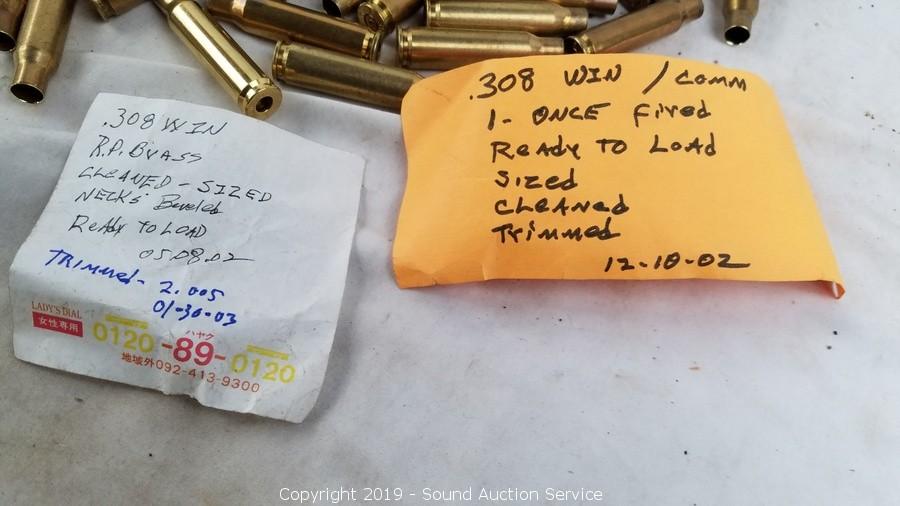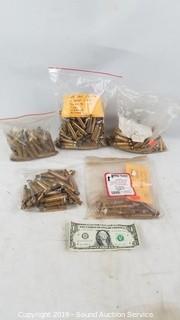 Includes: (161) Ready to Load .308 WIN (Sized, cleaned, trimmed), (47) .308 (Still have the used primers), (75) .243 From .308 MIL By Wipehit (Cleaned, have not been sized), (33) 7.62 (Still have the used primers), (10) .270 (Ready to load, cleaned, sized, trimmed).
