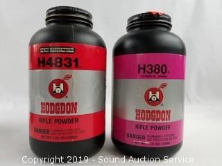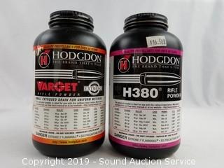 One is almost empty. Includes: (2) H380 (about 1/2 full), and Varget Small Extruded Grain (3/4 full).