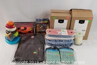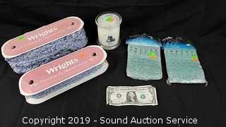 Tassel Fringe, Chambray Bandana Edging & Candle (Candle is Vanilla Walnut Clove. Fringe is 2" tassel, 9ft long. Edging is 1" wide, approx. 24 yards, and 1/2" wide, approx. 24 yards), NIP Classic 45" Adult Vampire Cape - One Size, Maisto & Dub City Die Cast Cars, NWT Infant Skipping Stones Stacking Toy, 2 NIB Yoots Black Insulated Lunch Cooler Bags.