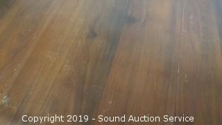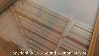 Tray is framed in wood with clear glass bottom. Tea cart rolls well, drop leaf, single drawer. Approx. 28" H, 26" L, 17.5" W (Opens up to be 38" W). Tray is approx. 24" x 16".