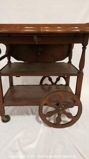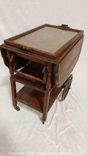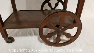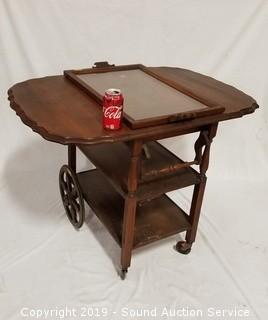 Lot #0203: Antique Mahogany Tea Cart w/Clear Glass Tray