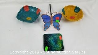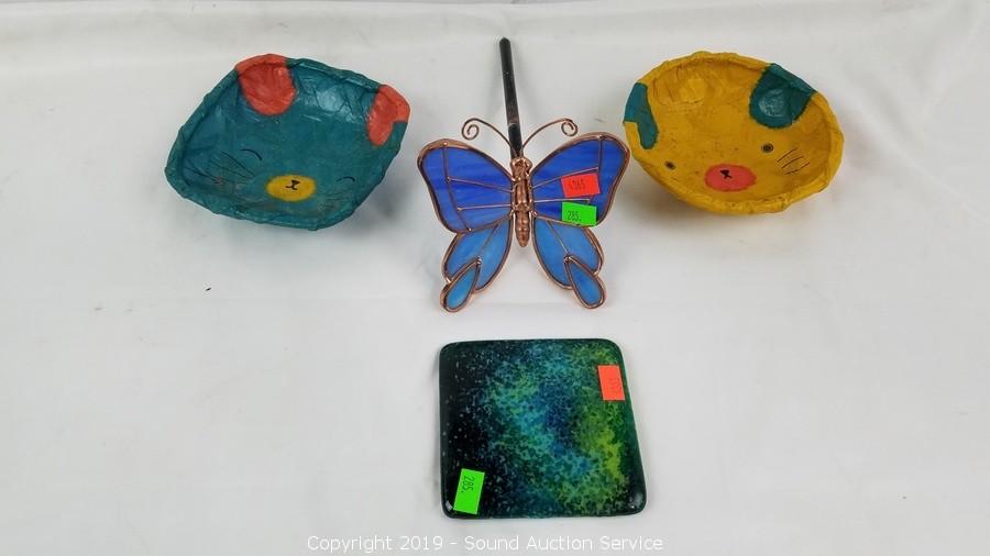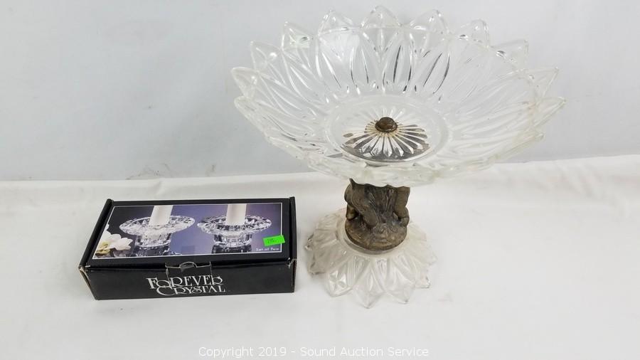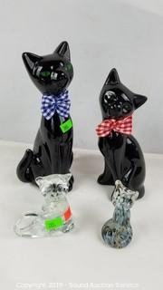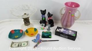 Includes: Gorgeous Gold Flake Multi-Glass Art Glass Vase, Vtg. Cherub Compote, 2 Art Glass Cats, 2 Porcelain Cats, Crystal Votives, and more.