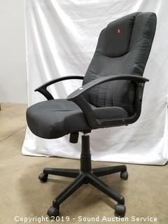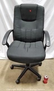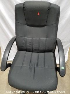 Comfortable. Has some cat scratches in the top right corner. Approx. 44" H, 25" W.