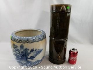 Lot #0329: Thai Celadon Pottery Vase & Asian Planter