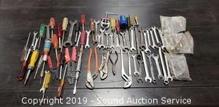 Includes: Screwdrivers, wrenches, pliers, vise grips, and more.