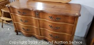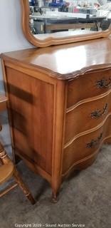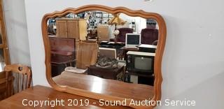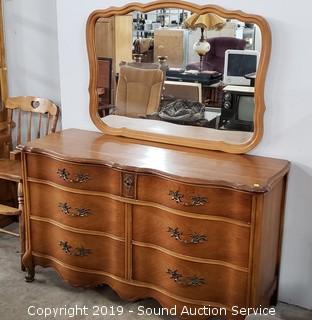 Lot #0326: Vtg Bassett Serpentine Front Mirrored Maple Dresser