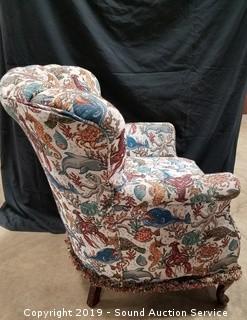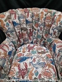 Lot #0190: Vtg. Fabric Ocean Sea Life Print Shell Back Chair