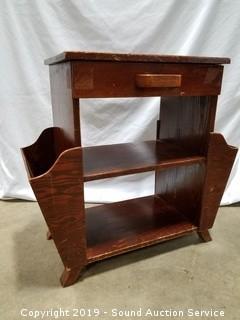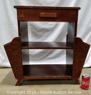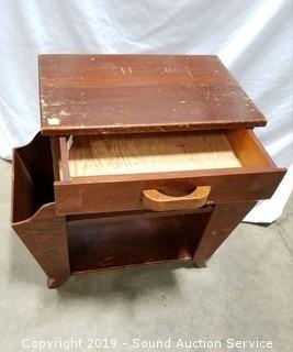 Lot #0310: Vtg. Single Drawer Side Table w/Magazine Racks