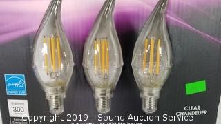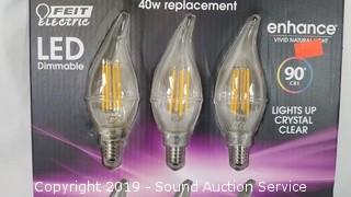 Lot #0335: 4pk Feit LED Dimmable Clear Chandelier Bulbs