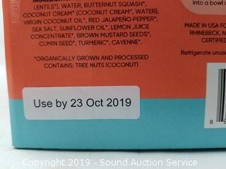 Red lentil, butternut squash and coconut flavor. You get 5 sealed packages. Best by October 23, 2019.