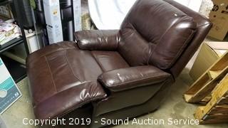 Features: Walnut Brown Color, Top Grain Leather, Glider Recliner, By Simon Li. Approx. 36.5" W X 41.7" D X 39.7" H. Like new condition.