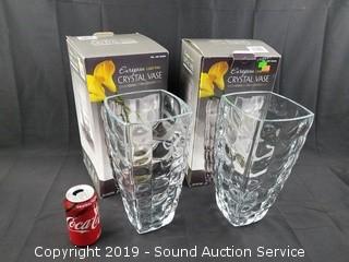 Lot #0061: 2 NIB Block Pattern European Crystal Vases