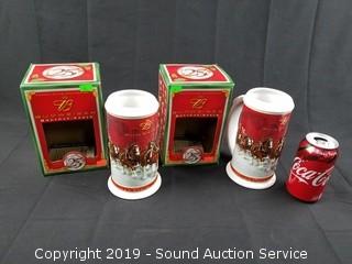 Lot #0062: 2 NIP 25th Anniversary Budweiser Holiday Steins