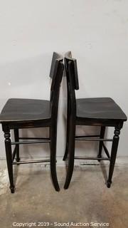 Lot #0003: 2 Shabby Chic Stained Wood Countertop Chairs