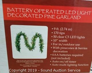Lot #0417: 3 Pre-Lit Garlands & Pre-Lit Wreath