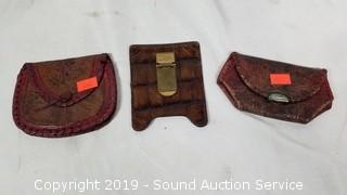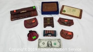 Lot #0298: 9 Leather Coin Pouches, Money Clip & Wallets