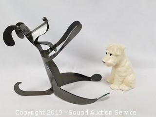 Lot #0243: A/S Metal Art & Porcelain Dog Sculptures