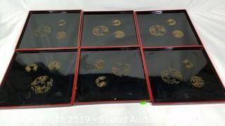 Lot #0266: Asian Plastic Lacquered Plates, Trays & Utensils