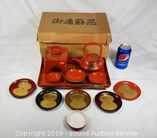 Lot #0251: Asian Plastic & Wooden Lacquer Tea Set