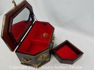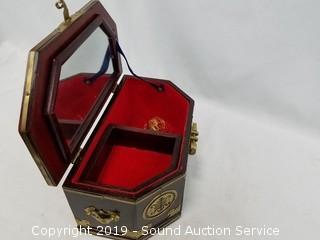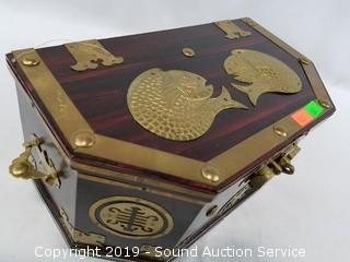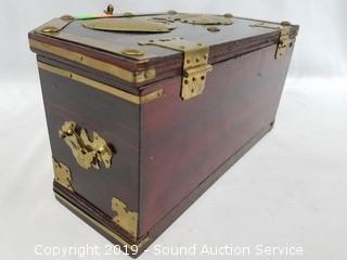 Lot #0367: Asian Wood & Brass Accent Locking Jewelry Box