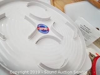 Most are new or like new. Includes: Lazy susan storage container holder (comes with the containers), and more. Refer to photos for more information.