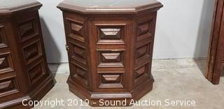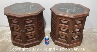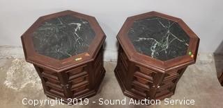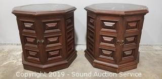 Lot #0006: Pair of Vtg. Octagon Stone Inlaid Side Tables