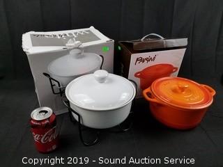 This auction consists of a variety of estates, décor, artwork, dishes & more! Includes: New & Used Cookware, Fina China Dishes, Carved Wooden Asian Privacy Screen, Unique Shell Windchime Lighted Chandelier, Accent Chairs, Counter Height Stools, Cook Books, New Parini Cookware, M&M Costumes, Comics, Pendleton & Filson's Shirts, Cabela's Apparel, Yarn & Sewing Fabric, Beautiful Original Artwork, Footwear, Gold & Costume Jewelry, Flatware, Leatherman Tool, Various Décor, Tools & Much More!