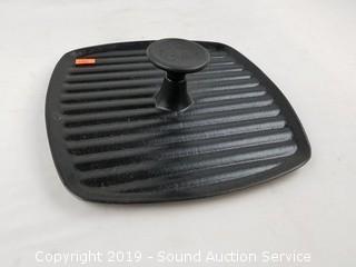Slow cooker is a 2-3QT?, approx. 10" x 7" x 5". Griddle is 12" x 21". Both are in excellent condition.