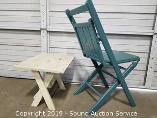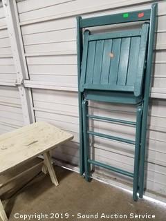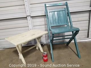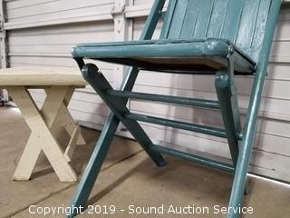 Lot #0364: Primitive Wood Painted Table & Folding Chair