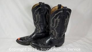 Lot #0134: Tony Lama Black Leather Cowboy Boots - S:12