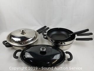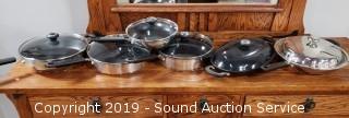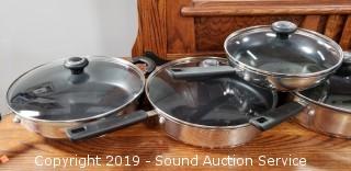Lot #0018: Updated: 6 Cooks Essentials Stainless Non-Stick Frying Pans w/lids