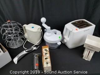 Includes: K-Cup Tower, KitchenAid Toaster, Hand Crank Food Processor, Mandolin, Kitchen Scale, and more.
