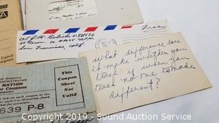 Lot #0314: WWII Letters & War Ration Book 1943-44