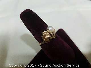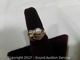 Lot #0122: 14k Gold Genuine Pearl & Diamond Ring Size 7