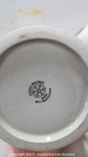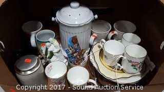 Includes: coffee cups, plates, canister, german stein and more.