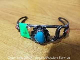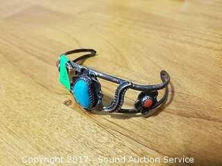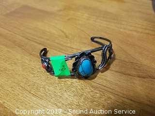 Set with Turquoise & Jasper. Approx. 2 3/8" wide. Total weight: 13.5g.