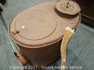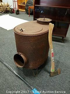 Lot #0021: Rustic Metal Stove W/ Hickory Forge Splitting Axe