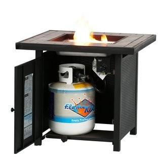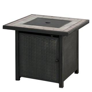 Comes in original box. Half of the slate needs re-cemented. Runs on 20lb liquid propane tank. Model SRGF11626. 30" x 30" x 25" H. 50,000 BTU, steel burner cover.