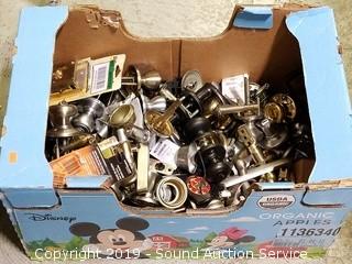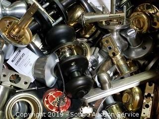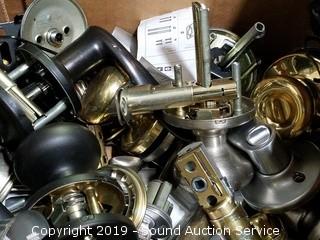 Lot #0278: Box of Door Knob Parts, Hardware and Pieces
