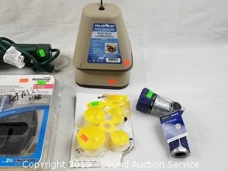 This auction consists of an array of various Home Improvement items. Including: Outdoor Fire Pits (Propane, Wood), Various Tools (Tile Saws, Miter Saws, Sockets, Wrenches, Tool Sets Tool Chest, Paint Sprayers/Guns, 40v Snow Blower, & More), Vanity's, Mirrors, Various Lighting (Vanity Lighting, Security Lights, LED Lights, Flashlights, Chandeliers, Pendants, & More), Pellet BBQ Smoker, Whole Home Water Filtration, Wine Cooler, Compact Fridge, Ceiling Fans, Thermostats, Whole Home Door Handle Sets (Keyed Entry, Touchpad, Door Pulls, Bed, Bath Closet, Patio), Heaters, Fans, Porchlights, Garbage Disposal, Various Food (Soda, Sparkling Water, Sauces, Cereal, Organic Snacks, Juices) & Much More!