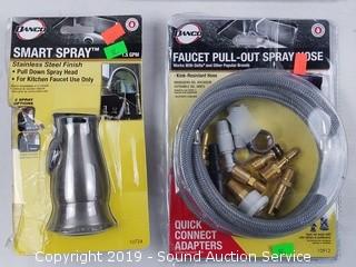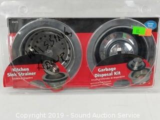 Includes: Mesh Kitchen Sink Strainer, Faucet Pullout Spray Hose, Stainless Finish Pull Down Spray Head, and Kitchen Sink Strainer and Garbage Disposal Kit.