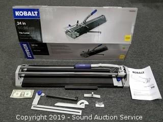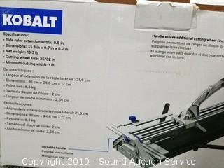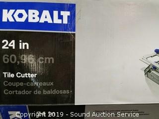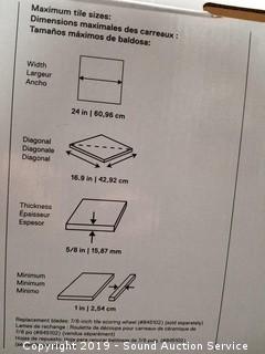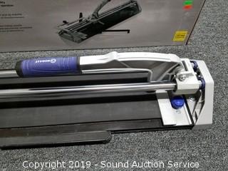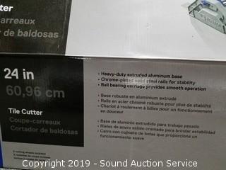 One of the extension arms is broken, comes with the piece. Has been used, complete. Cuts up to 24" width, 16.9" diagonal, 5/8" thick.